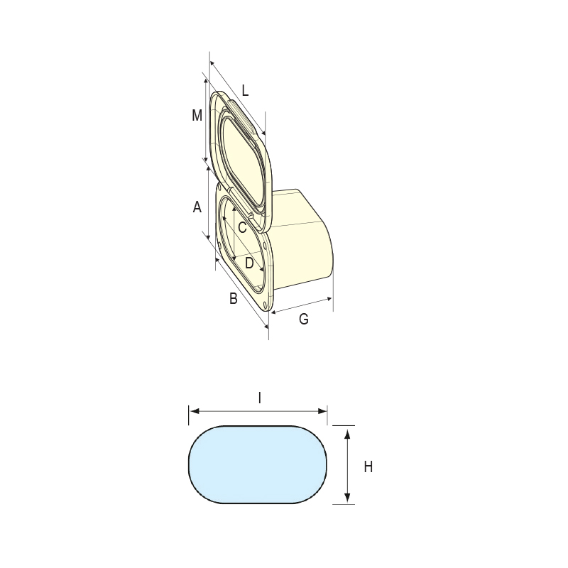 This hatch is available in dimensions of 111,5 x 177,5 x 73,5 mm, in oval shape and in white colour. It is ideal for storing objects and as a result expanding the spare space on deck needed. Made of UV-resistant high-grade ASA, it provides resistance to damage and chemical solvents. Designed for external use. UV-resistant frame and cover with a 180ο opening lid. It is specially designed with a non-skid surface and can be mounted both horizontally and vertically. This hatch is mounted with hidden screws for discrete appearance. EPDM rubber gasket provides resistance to water. It guarantees easy opening and easy access when needed.