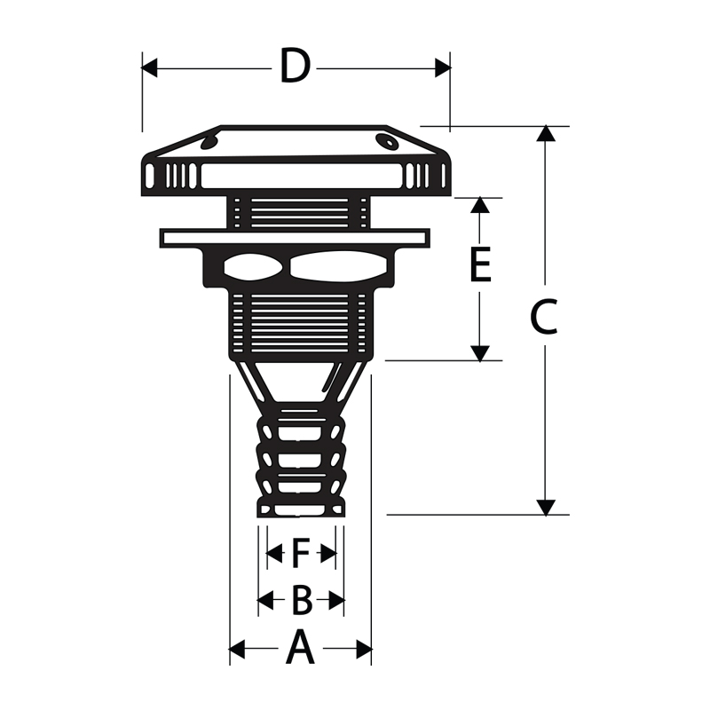 Thru-Hull Threaded Ø55mm, w/Non-Ret.Valve, White | 55mm | - | PA | 75mm | 41mm | 116mm | - |