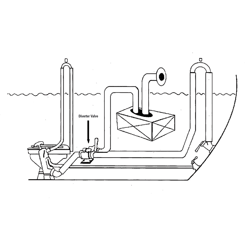 Sewerage systems: When installed in the holding tank discharge line, the y-valve allows the choice between pumpout through a deck fitting or directly through a seacock. When installed in the marine toilet discharge line, it allows the choice between storing the effluent in the waste tank or discharging it directly overboard (if legal).