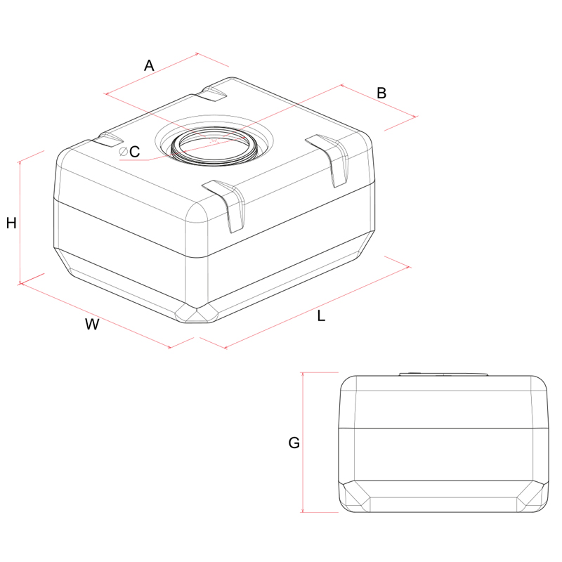 Water Tank 48L 600x450x210mm | 48L | 450mm | 133,5mm | 250mm | 225mm | 215mm | 210mm | 600mm |
